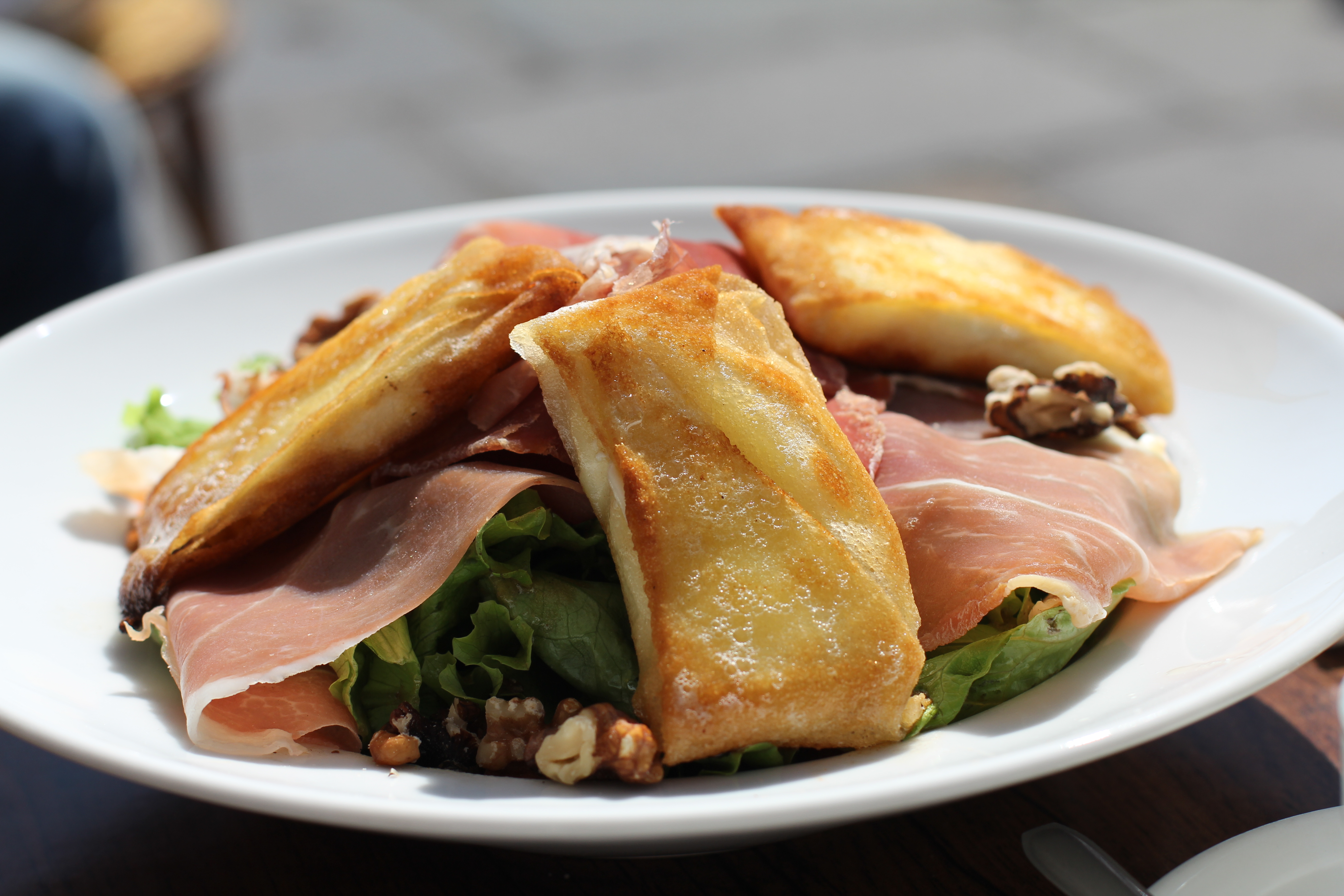 On Tuesday we did Le Marais and St. Germain on foot and obviously everywhere in between. It´s the day I did most of my shopping- a wool coat from APC, a silk top from Comptoir des Cottoniers and second hand goodies: a silk scarf, a cashmere sweater and jeans shorts. 😉 I love Marais, I´d go as far as to say it´s my favorite place in Paris! It might very well be because I´m a shopaholic, but it´s not just that! The bistros, the Jewish bakeries, the pretty buildings, I love it all! We had Italian lunch at Le Boucheron, the goat cheese salad below for me and pasta for Vuong. In the evening we had a tasty meal at Pères et Filles in St. Germain, frisky composed meals and a nice atmosphere.
