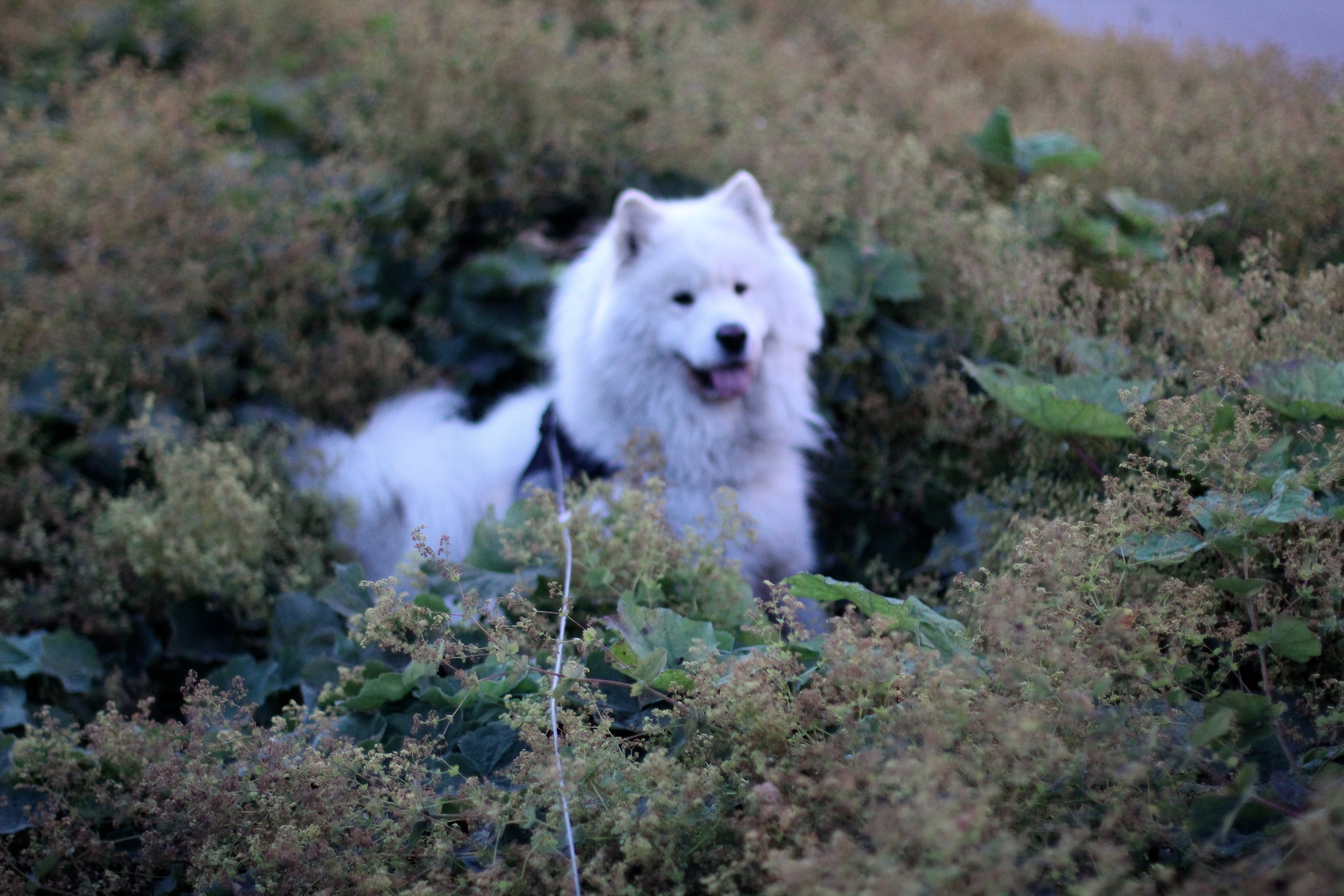 Sammy hiding in a flower bed. 😉